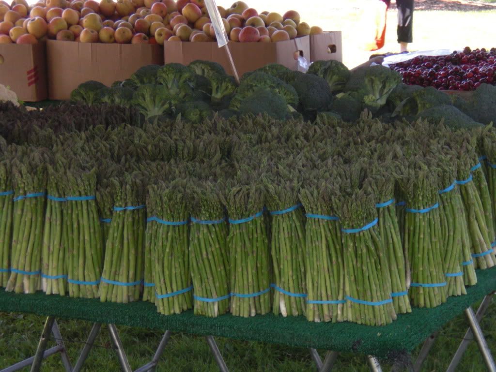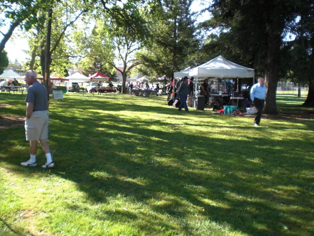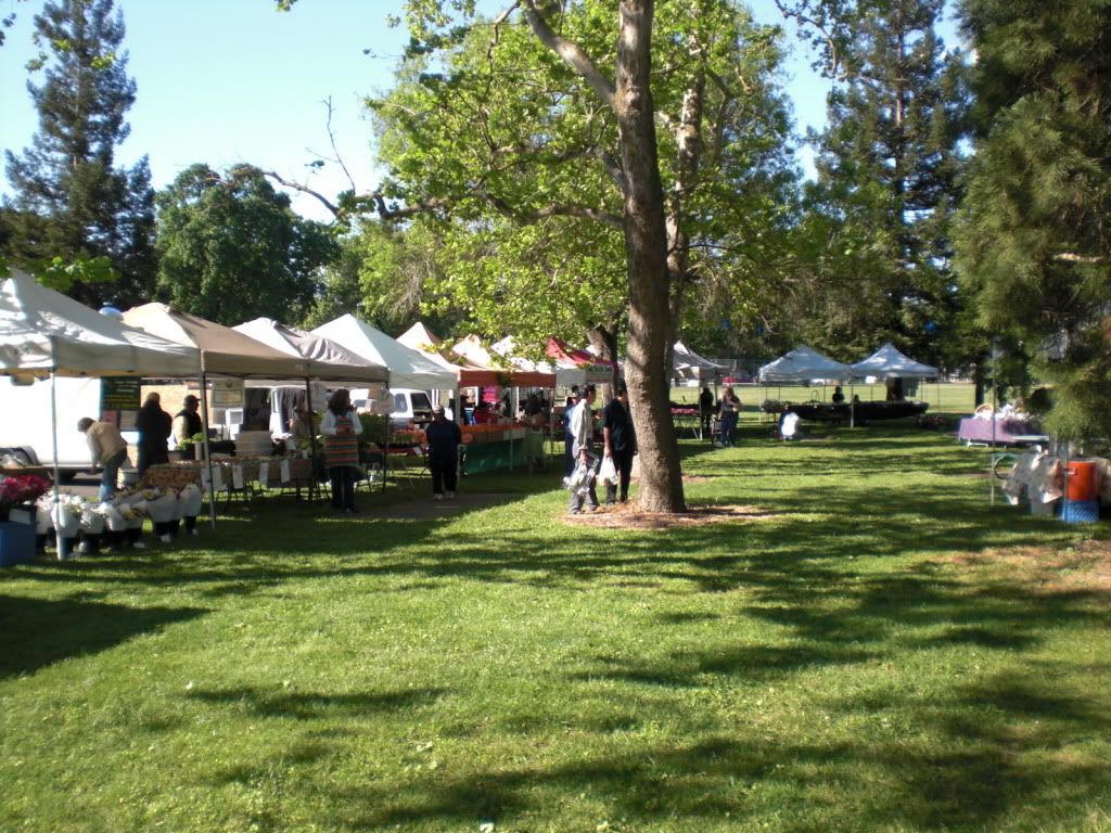 We were glad to have the closer location back at Sunrise Mall, but last Sunday they opened a second, much nicer farmers market in Carmichael Park. Instead of being on an asphalt parking lot, this new one is under the trees and on the grass of Carmichael Park. The layout is also much nicer with the booths set up in a rough triangle, leaving a nice big central area to move around in.
