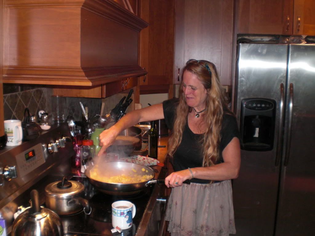 Since 35 people showed up meals were pretty much a free-form chaos. Here we have Satya whipping up a huge omelet with some dried salsa we brought with us to give it a little kick. Another morning I made up a gluten free coffee cake (recipe here) made from a couple bags of my Miracle Bread and some spices, ghee, and Dr. Dave sugar. Present at every meal however was fresh blueberries and cherries. Yes, I definitely ate my weight in blueberries while I was there. There is just something about fresh blueberries that my brain can't resist.