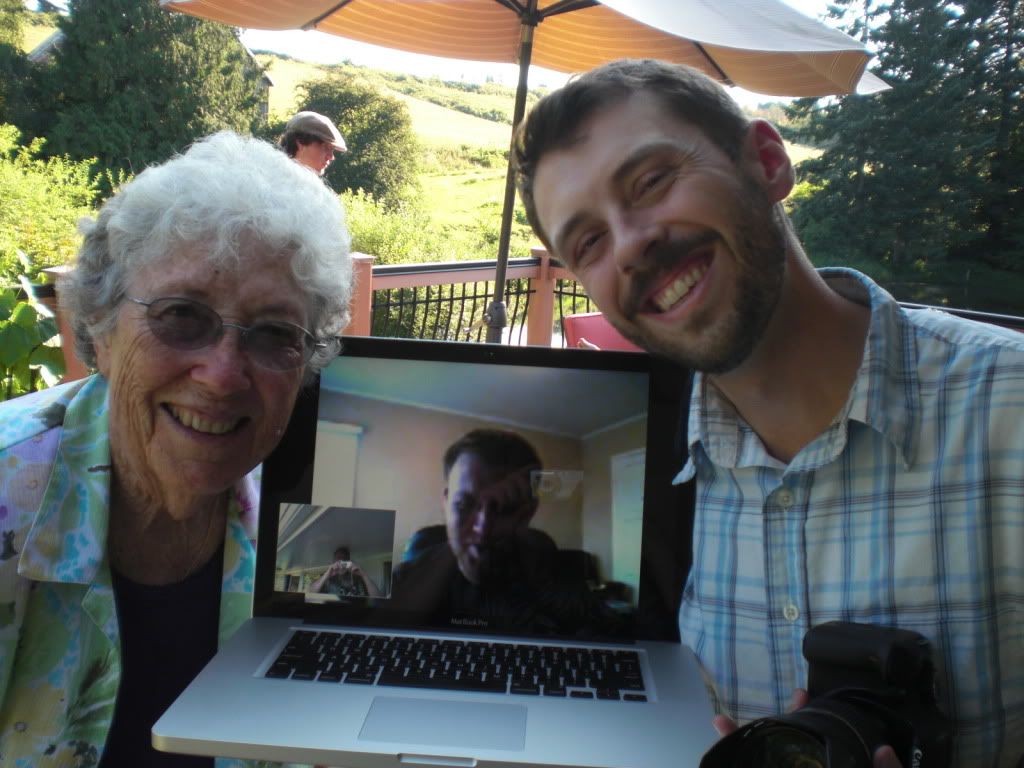 It is a good thing to just have some relaxed time with family. My youngest son Mason was not able to join us in person so he teleconferenced with us via Skype - here he is with my mother and oldest son Devon. We could carry him around to talk with people and so he could see what the farm looked like through the camera in the computer screen. Isn't technology amazing...