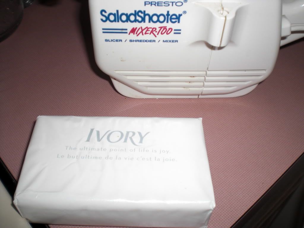 really made the commercial hand soap unappealing. So what was I to do? Being a DIY (Do It Yourself) kind of guy I said "how hard can it be to make my own hand soap?" I did a little research (quite a bit actually) and found the easiest way to make hand soap is to simply melt down a bar of normal soap in a lot of water with a tiny bit of glycerin added. Since I wanted something really gentle and natural I bought some bars of Ivory soap and went to work. First you have to grate the soap down into shreds - quick work in my handy Salad Shooter. Then it has to be gently melted into several quarts of purified water with a couple teaspoons of glycerin added. This melting and mixing phase can take a long tome before it reaches the right consistency. Once it does, pour it into your bottle and bam - hand soap... almost. After it fully cooled I had a product that looked and felt suspiciously like cow snot. It made a nice lather, but it took forever to get the slimy stuff washed off your hands. Next came the deeper research to find out what went wrong, and how do the pros do it? Well the pros do it with all kinds of unpronounceable and toxic chemicals that aren't actually soap at all. Most all hand soaps on the market are actually detergents and not soaps. Why do we care? Because soaps are nice and relatively gentle to the skin (when made properly) while detergents are harsh and damaging to the skin.