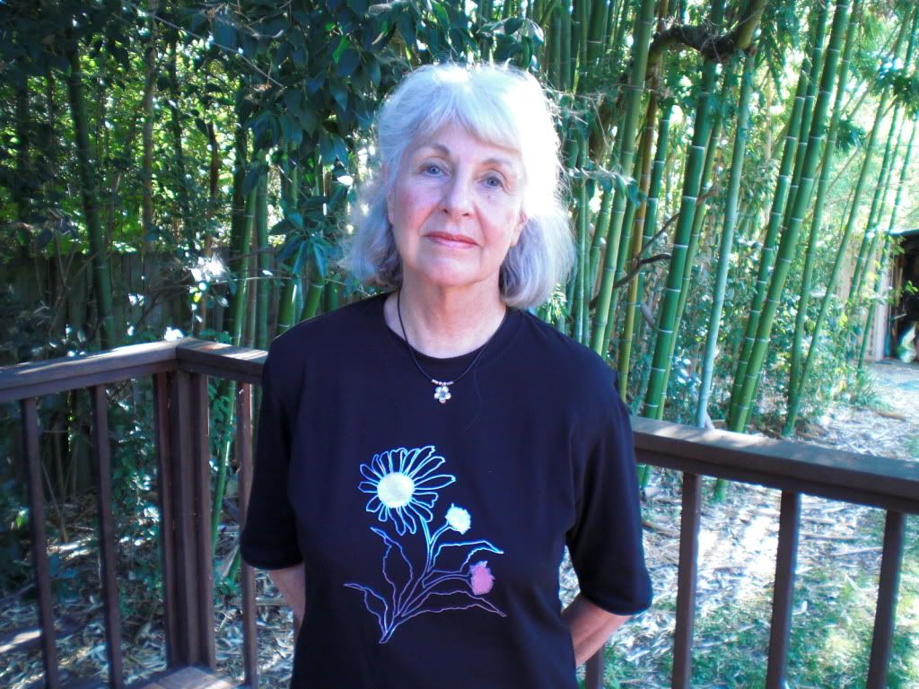 About fifteen minutes after Dr Fisher left on Thursday, Ellen arrived home and showed off her own "home project." A client of hers had asked her to design a floral graphic for a line of sun protective clothing she was creating. Ellen had been at a trunk show debut of the new clothing line and came home with an example of how the project had turned out. It was beautiful.