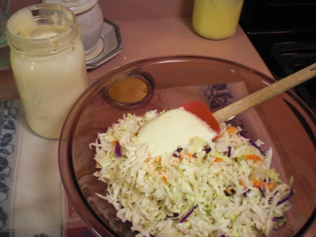 Success! The results were outstanding. Ellen used it the next day to make egg salad. The finished salad was every bit as good as egg salad made with Best Foods. Now the much more healthful avocado oil mayonnaise can become a staple in our household. Today I tried reproducing the recipe using a light olive oil to hold down the olive taste to take photos of the process. Again the results were superb. In minutes I had a wonderful coleslaw.