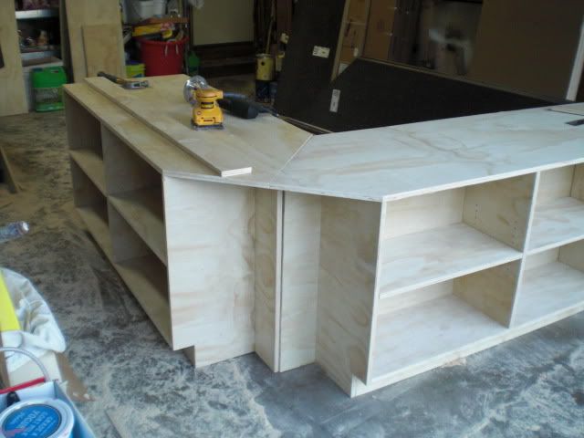 but we finally got our permits and have been busily working for a week now. Rough walls are up and rough electrical is in. I spent last weekend in my garage working on building the base to the new front desk...