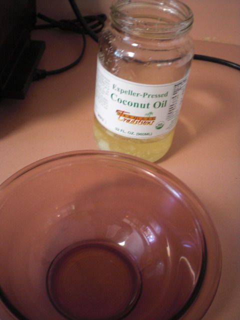 Don't heat the coconut oil up very much, just enough to melt it. I used the microwave 10 seconds at a time until melted. A warmed pan will work.