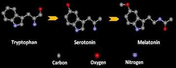What food chemistry can we use to help our sleeping? It is the amino acid tryptophan that the brain turns into the neurotransmitter serotonin that relaxes you to get you ready for sleep. You can increase the tryptophan levels in your brain to increase serotonin production by eating a high protein snack several hours before bedtime followed by half of a banana or some grapes or cherries. The natural sugar in these fruits increases the uptake of the tryptophan by the brain, plus these fruits have natural melatonin in them. The brain then transforms the serotonin into melatonin - the sleep hormone in the pineal gland. This production is shut down by light at night - particularly light in the blue wavelengths. Some people have found that wearing blue-blocker sunglasses or goggles in the evening improves their melatonin production allowing them to sleep better.