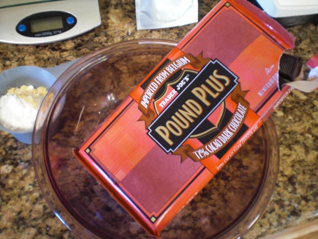 Step 1: Buy a bar of Pound Plus 72% dark chocolate from Trader Joe's. We use dark chocolate because any milk in the chocolate neutralizes much of the beneficial antioxidants in chocolate.