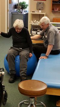We are getting back on tract rehabing Ellen. Our goal has been to get her to be able to walk on the beach to my son's wedding on May 31st down in Carmel. We are pushing for this goal. Here we see Ellen at the physical therapist's working on core balance.
