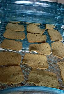 on my dehydrator trays. For a touch of extra flavor I lightly dusted the slices with a touch of garlic salt before popping the trays into the dehydrator and switching on the heat.
