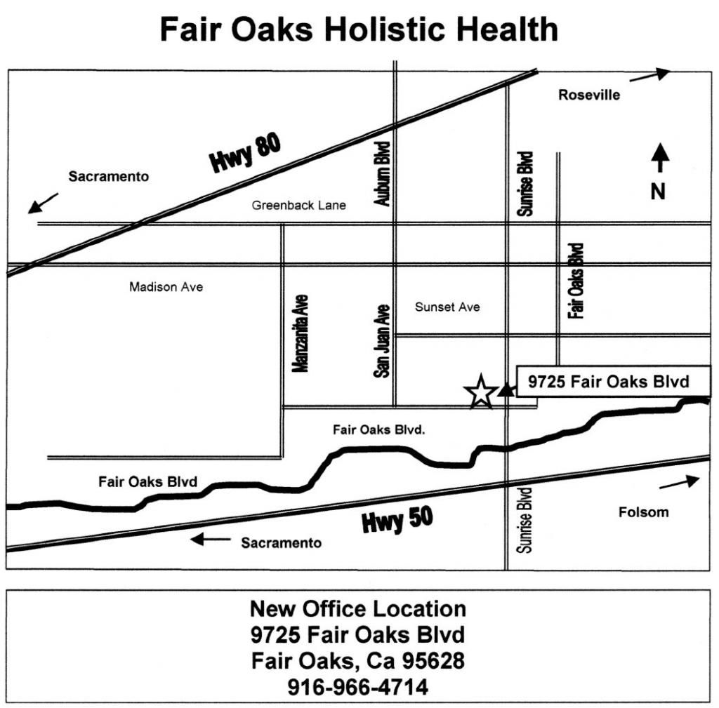 Finding the new location is very easy. Coming from highway 50 up Sunrise Blvd, you turn left and go up a block. We are on the right hand side - the building just past the Subway Sandwich shop. If you are coming down Sunrise from the Mall area then just turn right on Fair Oaks Blvd and up a block on the right.