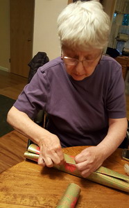 Ah, the best laid plans... The Ellen update was supposed to be showing Ellen wrapping Christmas presents for lots of people today. But Ellen was down with a fever all day today and so no picture was forthcoming. She was able to assemble the big jar full of homemade chocolates for her dentist yesterday which I delivered today, including the sugar free chocolates for Dr. Mohamed. I did find this old