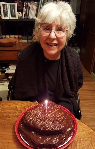 Ellen celebrated her 74th birthday this last week. Happy Birthday Ellen! I made her a sugar free birthday cake that was actually a toffee blondie topped with a chocolate heart shaped brownie all covered by a drizzle of dark chocolate.