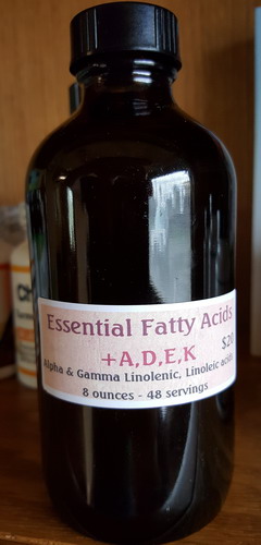 Those of you that know me can guess what I did next. Of course I created an essential fatty acid supplement. And also of course I had to take it several steps further by adding to it all the fat soluble essential vitamins – A, D, E, and K2. Now I can take my essential fatty acids and get the fat based vitamins at the same time – without adding any more pills to my morning. In order to minimize the amount to take, I researched just which oils had the
