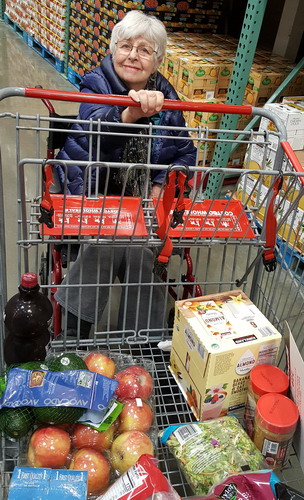 In spite of the rain, life goes on. Our weekly trip to Costco has been a tradition since way back when Costco was known as Price club - quite a number of years now. We make quite a pair with me pushing Ellen as Ellen manhandles the cart through the crowds. Watch out! Wheel chair coming through!