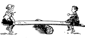 This all sounds pretty esoteric, so let me relate an example I used many years ago about a challenge with a teeter-totter. Imagine a long teeter-totter. You are sitting on one side and somebody else is sitting on the other. Balanced right in the center is a big bag of candy. Both of you are hungry for the candy. The challenge is to play on the teeter-totter and