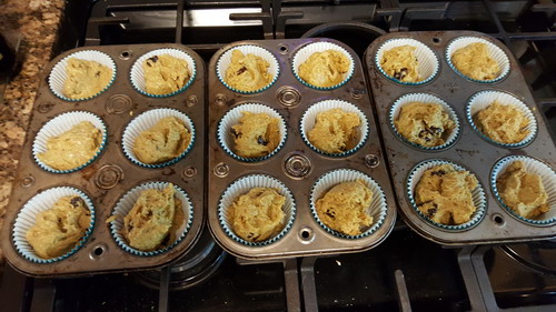 Spoon into paper muffin cups and bake at 350 degrees for 20-25 minutes.