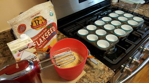 So anyway, last week I was experimenting with creating a flax muffin without the usual levels of added oil to the muffin mix. Usually any bran muffin mix involves at least half a cup of added oil or more. This helps the