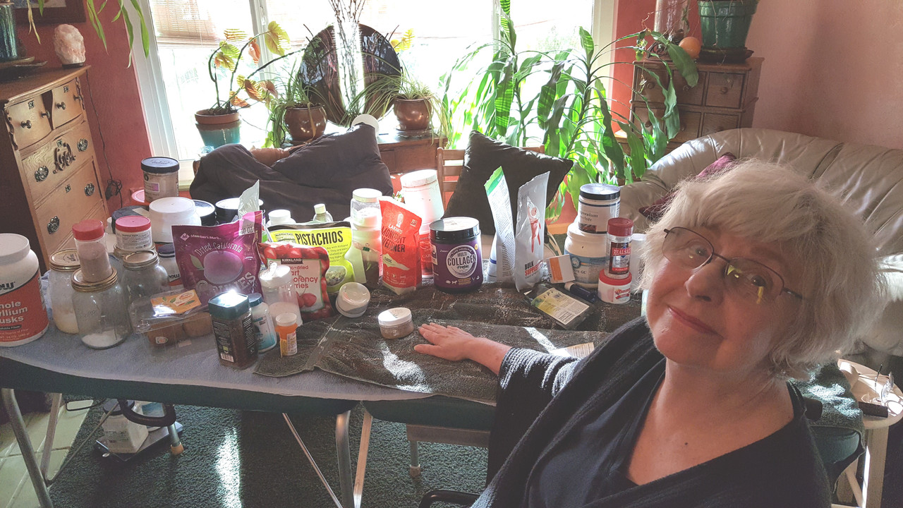 Chaos reigns! Ellen decided to clear off all the kitchen counters to reseal the granite. Our counters have gotten rather cluttered with all our supplements and what not. So with a little help, the junk has been shifted to a massage table while resurfacing happens. Now what? We have these nice clean counters now, but do I really want to simply replace the clutter?