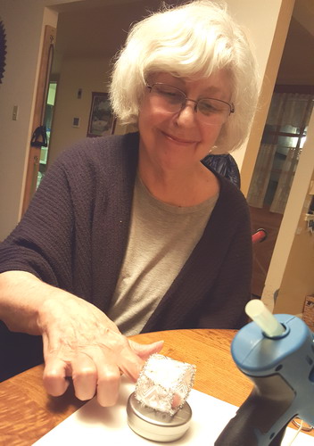 Work has started on Christmas presents. Ellen has pulled out her new glue gun and started playing with the tins that will enclose the present. Presentation is very important so trial and error is a necessary part of the process.